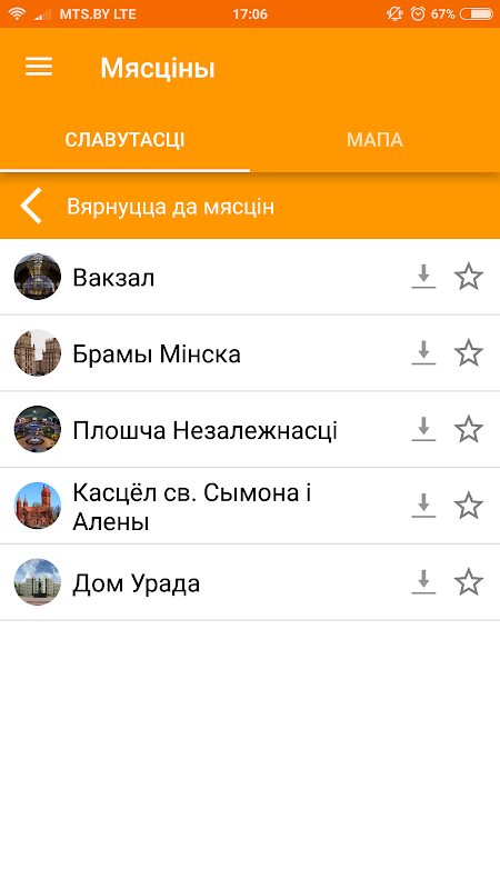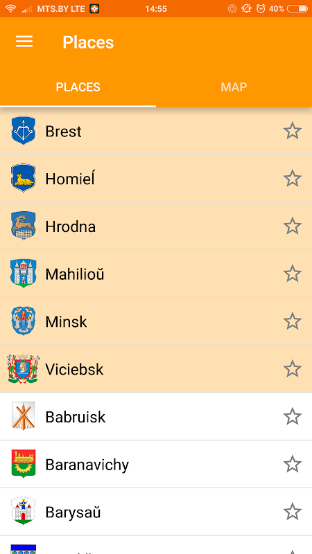 There are 110 cities in Belarus. The quantity of cities about which can be known via mobile programs (not audio guides), which are placed in Google Play mobile programs shop: up to 20. There are less than 10 mobile programs with audio content on big cities of Belarus. There is no program, which would collect and easily present historical and cultural information about cities of Belarus. In addition, it should be noted that there are more than 27 000 residential places in Belarus, about which it could be told by modern means to larger auditory – foreign tourists, inhabitants of cities and inhabitants of residential places themselves.