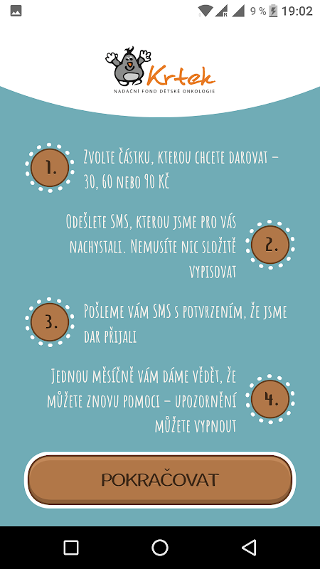 This application can be used to send donor SMS (DMS) Foundation for Pediatric Oncology MOLE. Applications you can once a month to remind opportunity to help.