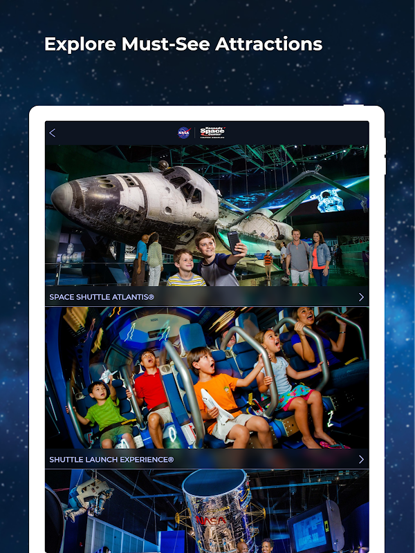 Explore the Kennedy Space Center Visitor Complex with the new KSC SmartGuide! Your device is a digital tour guide that offers guests a customized tour experience with audio, maps, fascinating facts, historic and current photographs, and video. Experience a journey through the complex in any of the eight languages available with information for attractions and exhibits. This is the perfect tool for a translated tour. Multilingual and ADA accessibility.