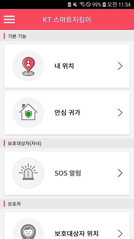 - 보호자 서비스(월정액 가입한 보호대상자가 설정한 보호자)