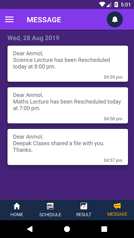 * View schedules for upcoming test and lectures.