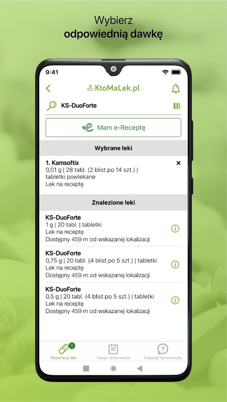 Application supporting the process of searching and booking of drugs in pharmacies.