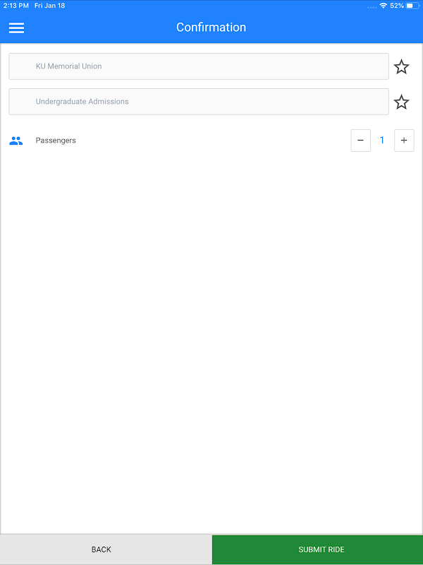 A safe ride is just a tap away! Request a safe ride KU SafeRide - instantly notify drivers of your ride request and receive a push notification when they arrive.