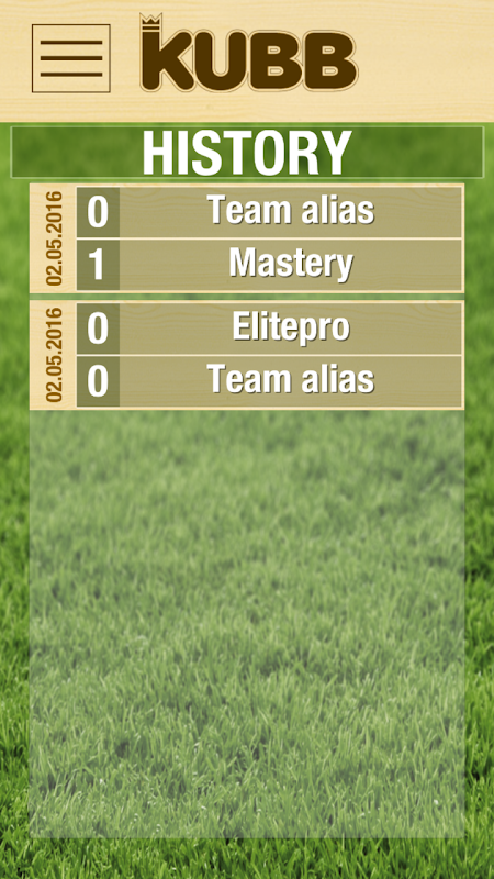 Kubb Score Tracker let's you create your game, add players or teams, add pictures with your camera and keep track of your game's progress.