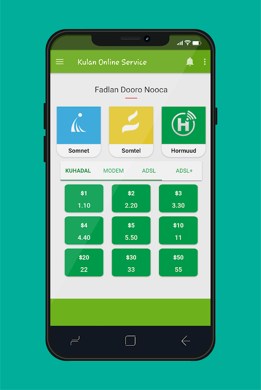 Ka iibso Kulan Online Service App xirmooyinka Somnet Data oo Raqiis ah