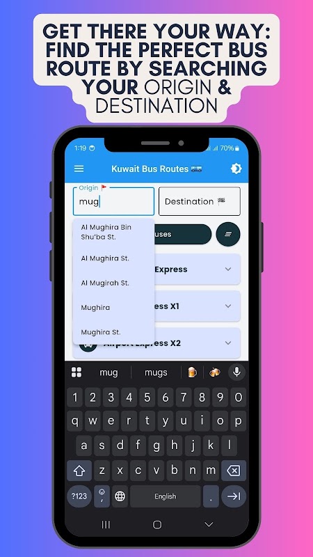 Find Kuwait bus routes offline. Search origin/destination easily. Simple & fast.