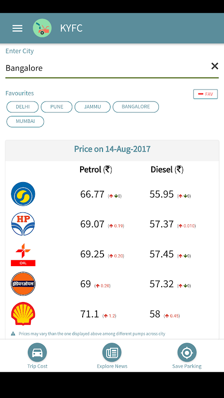 KYFC App helps its users to get real-time updates for Petrol/Diesel price anytime anywhere