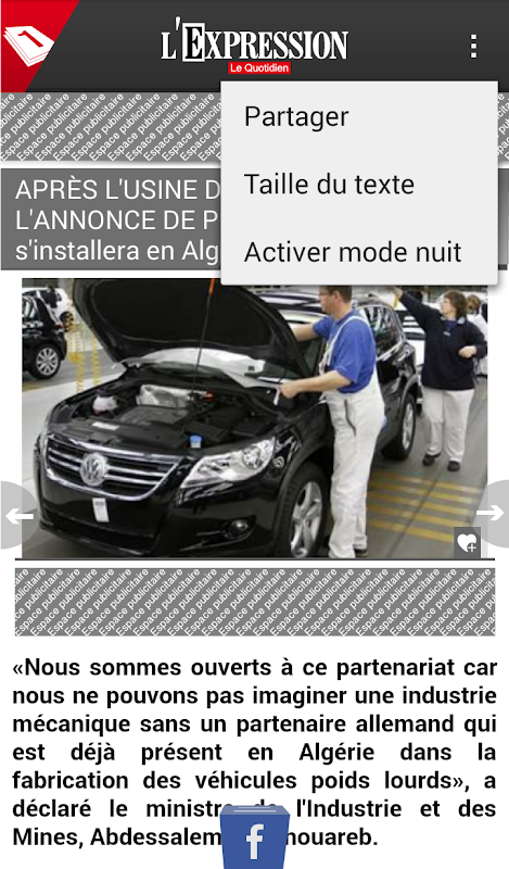 L’application mobile vous permet de consulter l’information en continu, de partager avec vos amis les derniers articles par mail, de les publier sur Facebook ou Twitter.