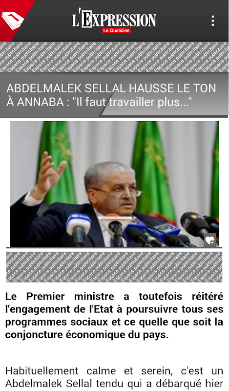 The mobile version of your newspaper "L'Expression" on the fingertips.
