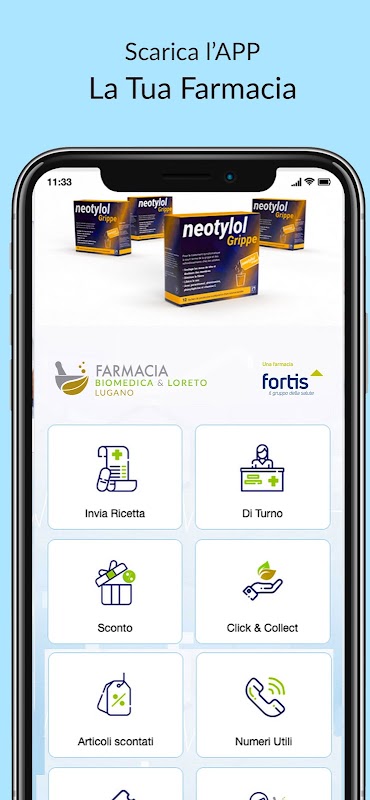 Download the App of the Biomedical and Loreto Pharmacies of Lugano.
