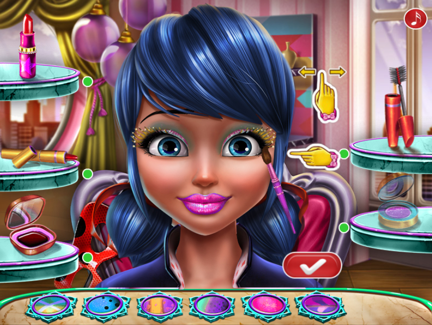 Use lipstick, lip liner and gloss, mascara and eye shadow. Enjoy playing ladybird Girl Lips Injections!
