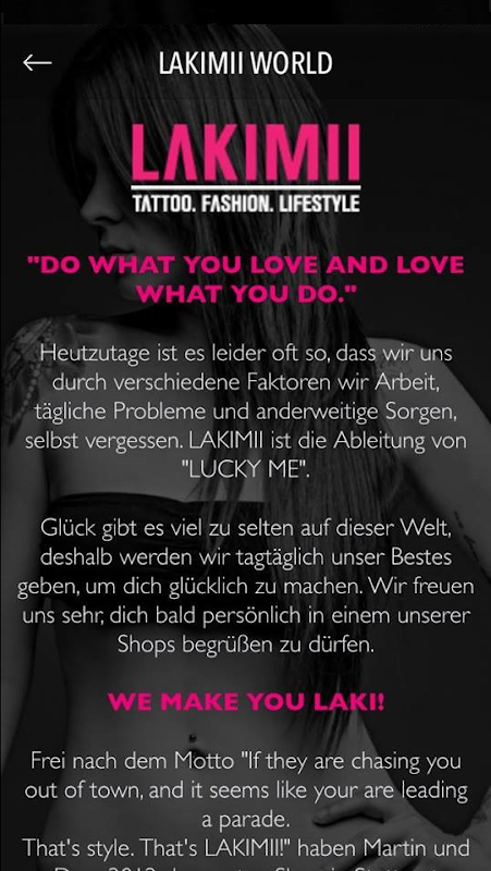 Du genießt durch die LAKIMII App eine Menge an Vorzügen und wirst über alle Neuigkeiten und Aktionen informiert. Mithilfe der LAKIMII App hast du die Möglichkeit LAKIMII Coins zu sammeln und diese gegen eine Prämie oder ein Geschenk bei LAKIMII BAD CANNSTATT, FREIBURG, HEILBRONN, KARLSRUHE PFORZHEIM & STUTTGART einlösen.