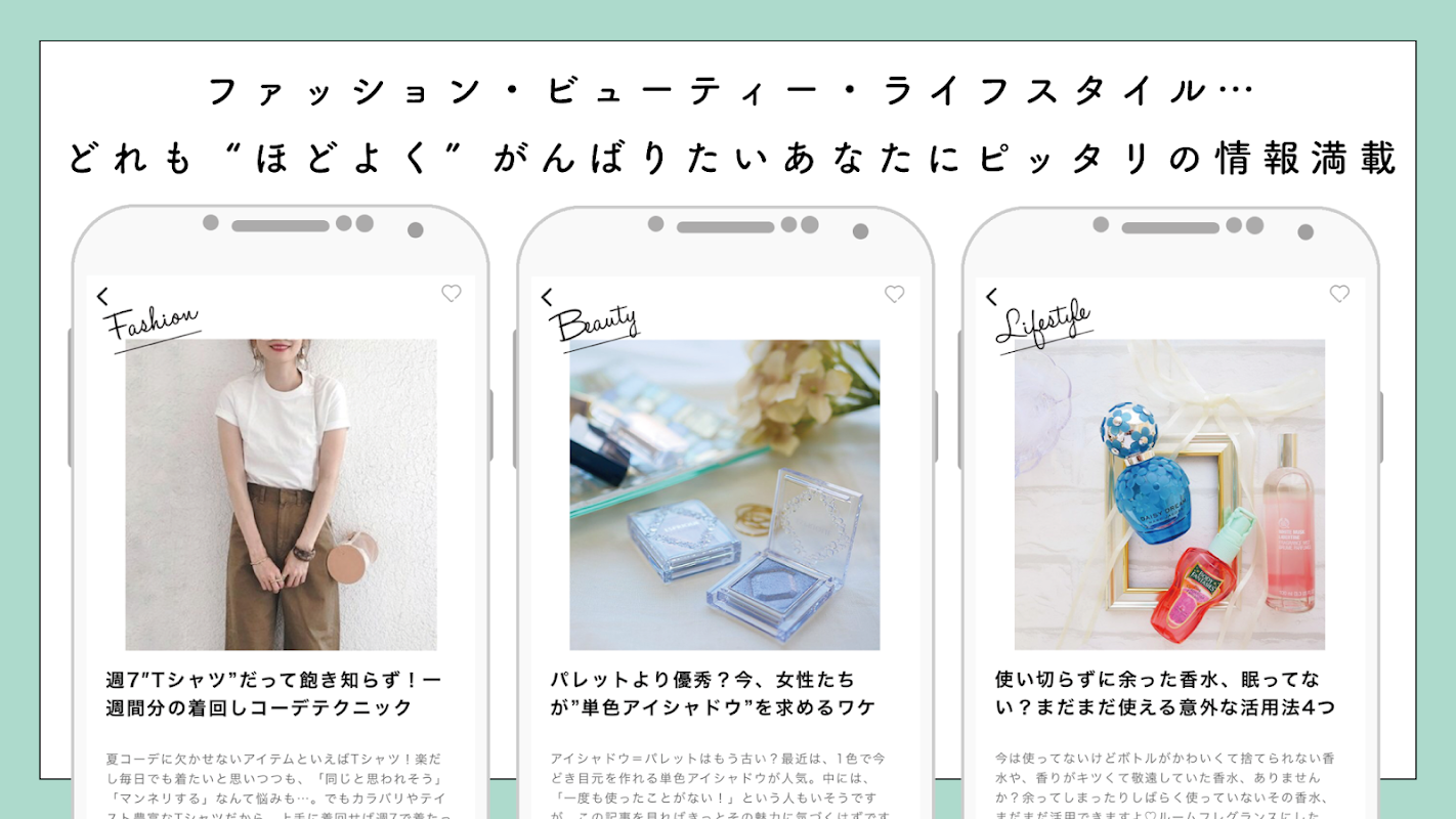 ・「MERY(メリー)」「TRILL(トリル)」「Locari(ロカリ)」「MINE(マイン)」「キナリノ」「北欧、暮らしの道具店」などのファッション情報アプリ