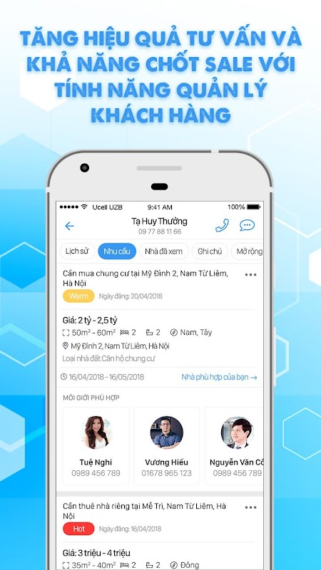 - Tăng hiệu quả tư vấn và tỷ lệ chốt sale bằng cách quản lý lịch sử giao dịch và ghi chú nhu cầu của khách hàng một cách dễ dàng.