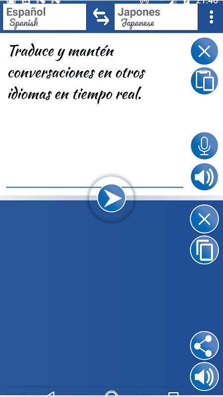 Language Translator Fast turns your device into a translator of conversations between different languages in order to break the language barriers with foreign, into your tours ... or just use it to practice a language.