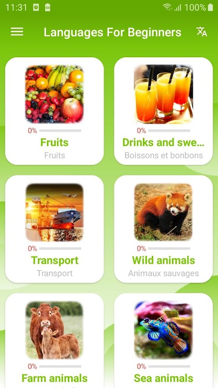 Languages For Beginners help Beginners get more confident in speaking and listening to Languages. Kids and Beginners will learn Languages by play interactive games by good topics and real life, easy and fun to learn vocabulary through pictures.