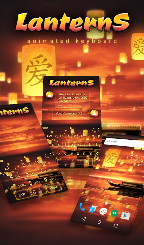 Lanterns Keyboard & Wallpaper is an awesome personalization app that gives your Android phone a stylish new look. Wave cool wallpapers and keyboards apps help revamp a device in just 3 steps: