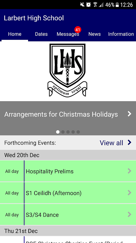 Larbert High School App for Calendar Events, News, Messages and Information.