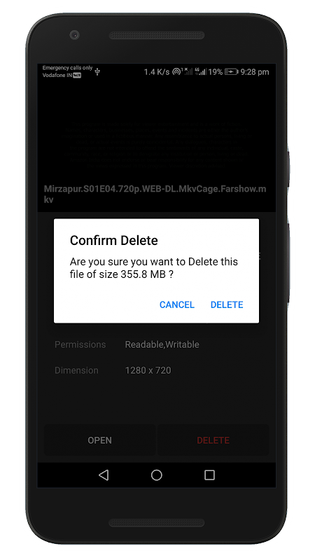 Find large files easily now with this small application to save your device storage from getting exhausted! Large files finder finds the big sized files which are taking up the maximum space in your storage and shows it to you.You can delete them to get lots of space.