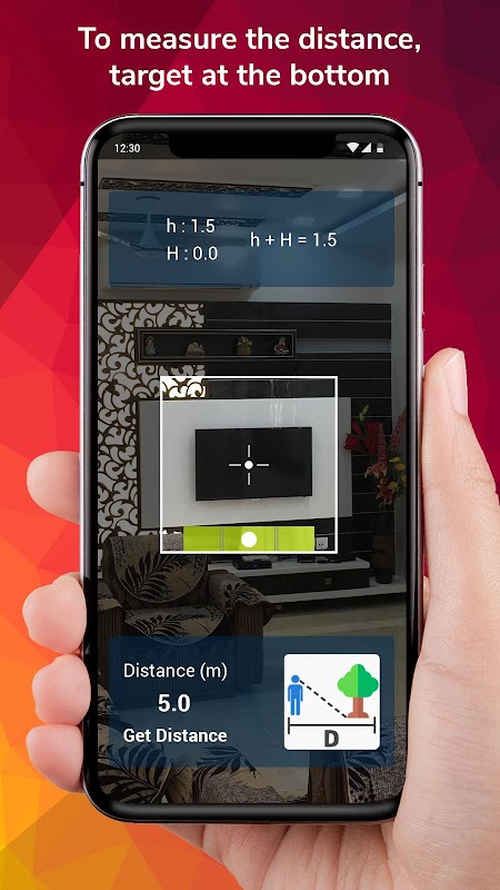 Distance Calculator: Using this tool you can easily calculate the distance between any given point to any given point on using your smartphone camera. You have to open the app to measure distance between any 2 points using this tool. Select point 1 and select point 2 and free them so that tool will calculate distance between 2 given points. Depending on the correctness of phone sensors the measuring results can have a deviation up to 10%. Use this app to measure the distance and height! This distance app is easy to use and you can directly start to measure distances to objects. This rangefinder (telemeter) measures the distance and height of a target using trigonometry. The important point is that you must aim your camera at the GROUND, NOT the object. For example, in order to measure the distance from someone, aim at his shoes.