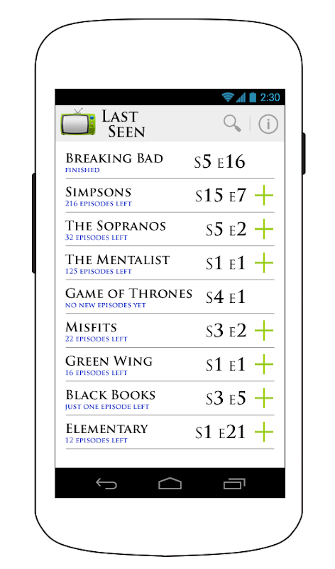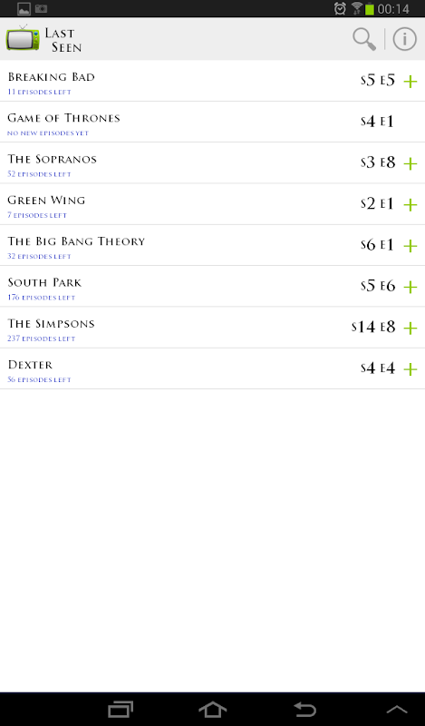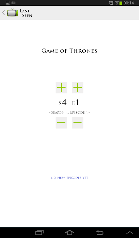 An App to remind you of the TV serial episode you have seen last. Moreover, it will show you if there are any new episodes waiting. 12 TV shows in the free version. Full version with unlimited TV serials for 1€.
