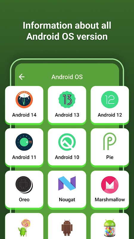 With this app, get insight and knowledge of old and latest android version. Get complete info on android versions :