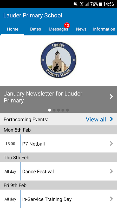 Lauder Primary School App for Calendar Events, News, Messages and Information.