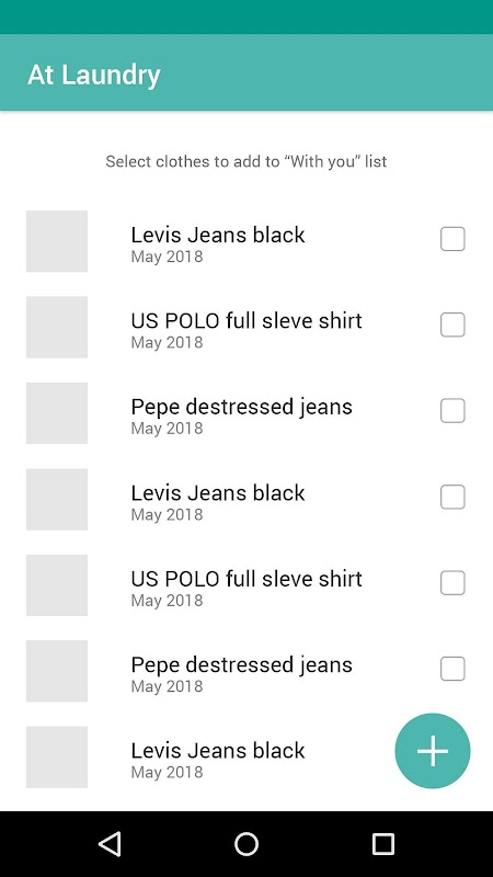 Laundry Checklist - You can track your cloths "with you" and "at laundry" cloths