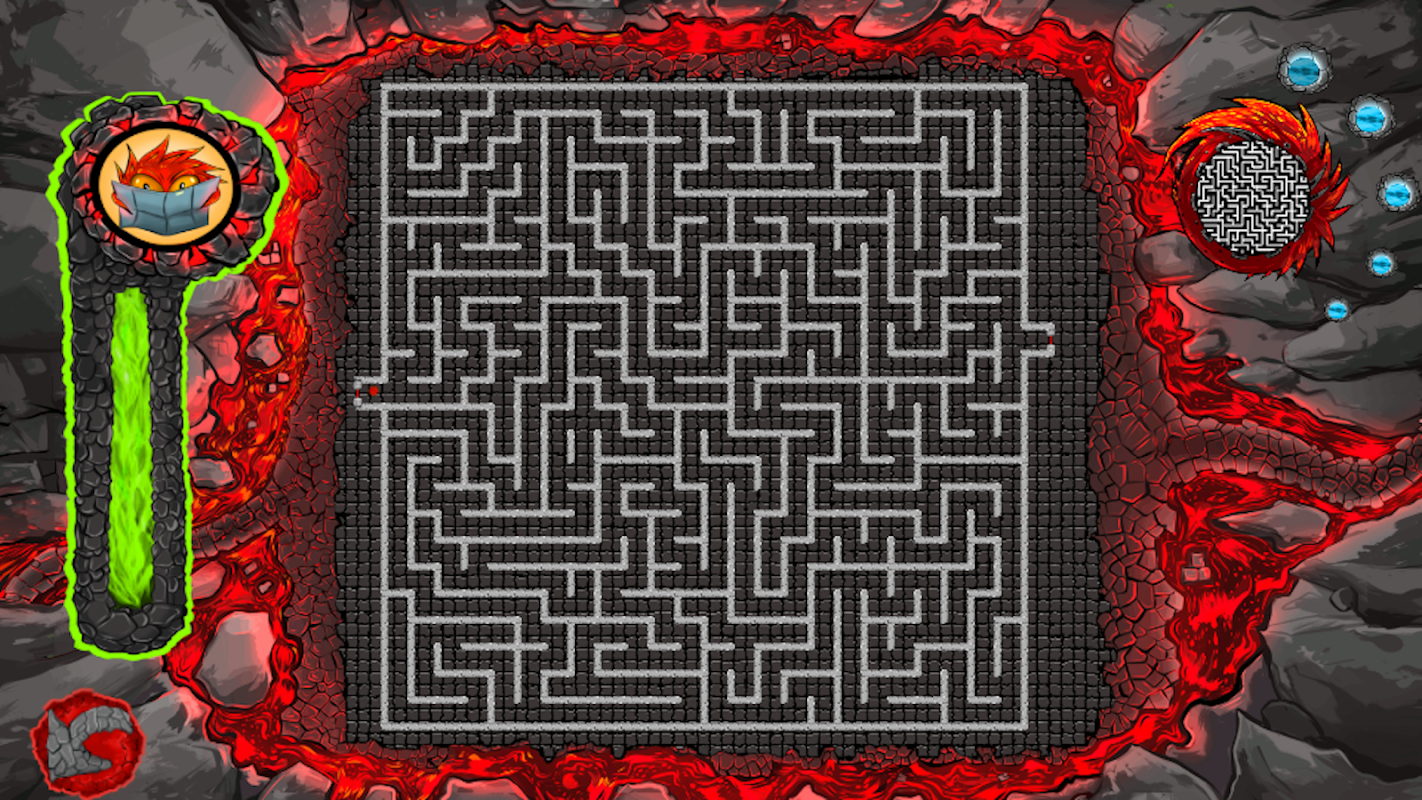 Choose between 4 levels: easy, normal, hard & extrem. Depending level, maze is larger & complex, so it takes a higher concentration. Concentration is important because the lava bubble can’t touch the walls of the maze.