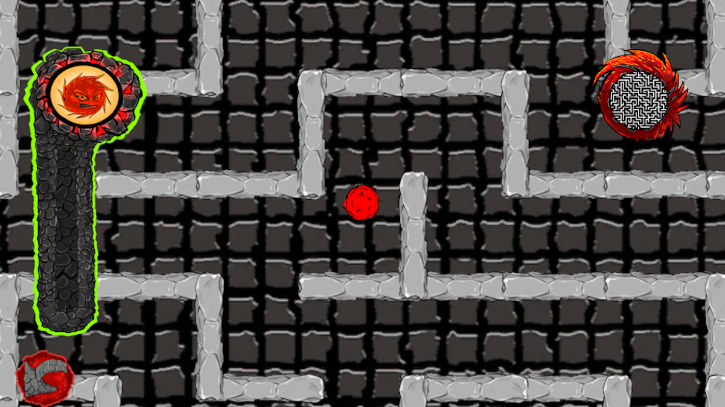 Solve maze, control a lava bubble that runs through the maze. Bubble moves according to the accelerometer. Maze generator.