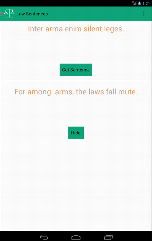 Application with law sentences in Latin. One click and you get a maxim with translation. Many interesting features. Best choice for any enthusiast of Roman law, which knows how to carry a lot of wisdom Legal maxim.