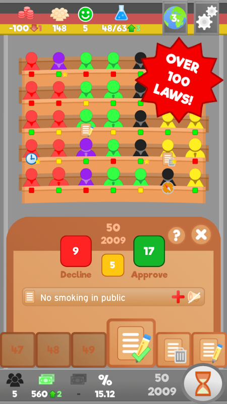 Lawgivers (formerly Laws of Civilization) is a turn-based political simulation game. Enter parliament/congress and make use of democracy to approve important laws and rank among first countries in the world.
