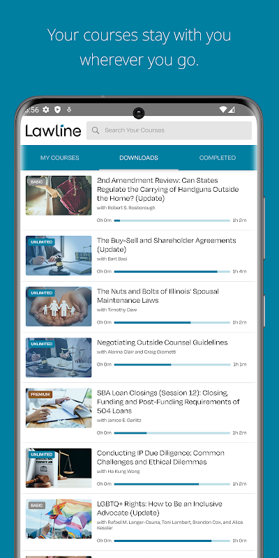 Lawline’s mobile app makes earning Continuing Legal Education (CLE) credits more convenient than ever. Access courses tailored to your interests and lifestyle by watching or listening to programs on the go. Traveling? Download your preferred courses for offline access and continue learning anytime, anywhere. Plus, unfinished programs save automatically across devices, allowing you to switch effortlessly without losing your progress.