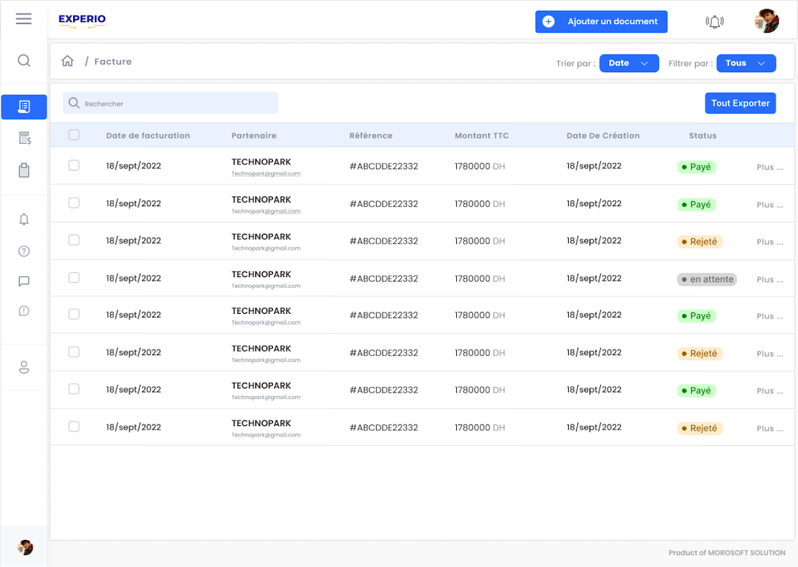 EXPERIO solves the problem of entering accounting documents (invoices, bank statements and expense reports), and reduces the risk of error among accounting firms and accountants. It makes it possible to manage the relationship between the accountant and his clients (exchange of data, request for services, follow-up of the accountant's work by the client, etc.) as well as the internal management of accounting firms and chartered accountants.