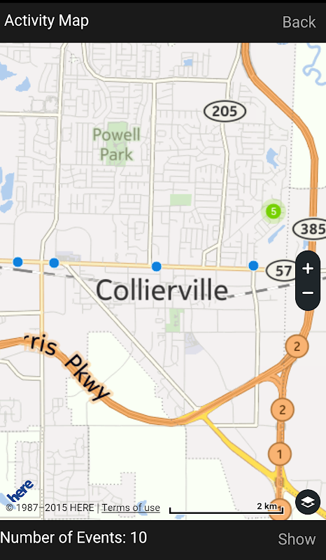 For each device you can view their summary, alerts and activity. The summary page contains a link of the last known location of that device. The activity page contains a list of reported events, which will direct the user to a map with that location if the link is pressed. On pressing the Activity Map link, the link located inside the activity page, a map will be rendered showing the activity of that particular device with markers. Furthermore, there is an option of choosing how many markers to show on the map within the activity map page. This option will show as much as 50 markers and as few as 5. However, if the amount chosen is greater than the reported amount then the reported amount will only be shown.