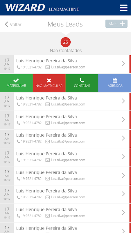 Versão mobile da LeadMachine Wizard, com funções de gerenciamento e métricas.