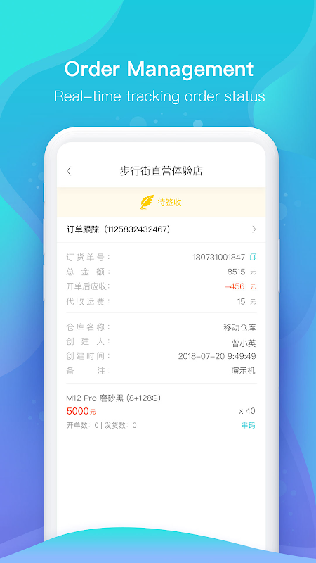 3.Order management: Real-time update of order status embedded with tracking function of logistics and IMEI code list.