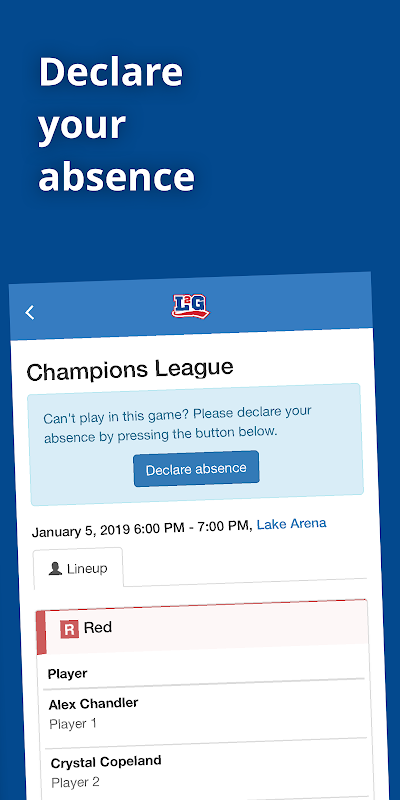 * Declare your absence. Just choose the game in the calendar and tap the button "Declare an absence".