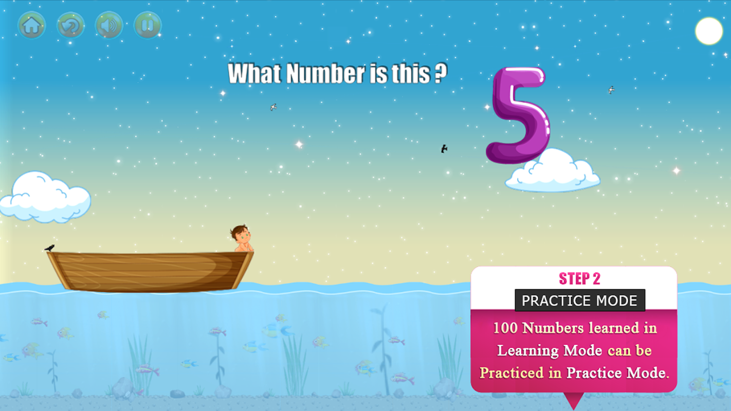 2) Practice Numbers Mode: All numbers learned in learning mode can be practiced in practice mode. This app is good to practice 1 to 100 Numbers. Kids can learn numbers quickly by practicing many times.