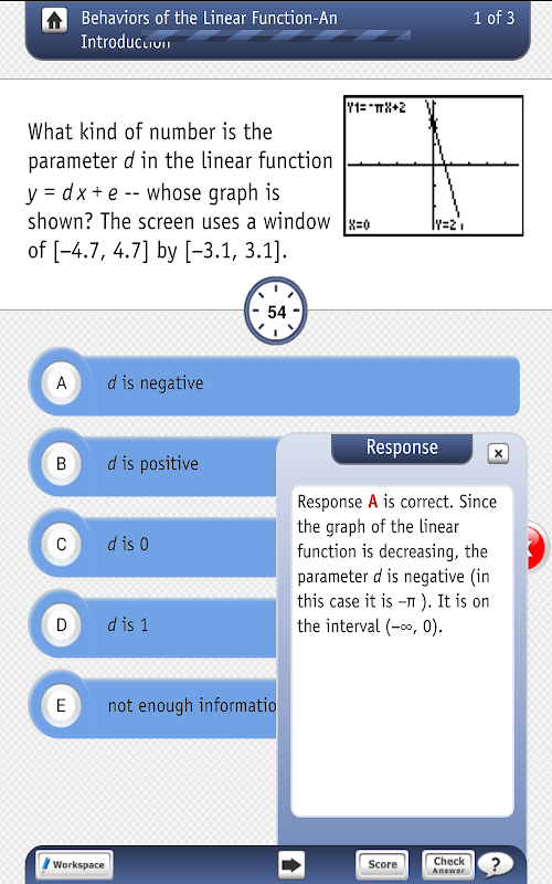The 9 algebra apps linked to this catalog app contain 81 lessons and 948 multiple-choice or open-ended questions. Upon answering a question, you receive a correct response and verbal confirmation if your response is correct. A score is displayed at the end of each lesson.