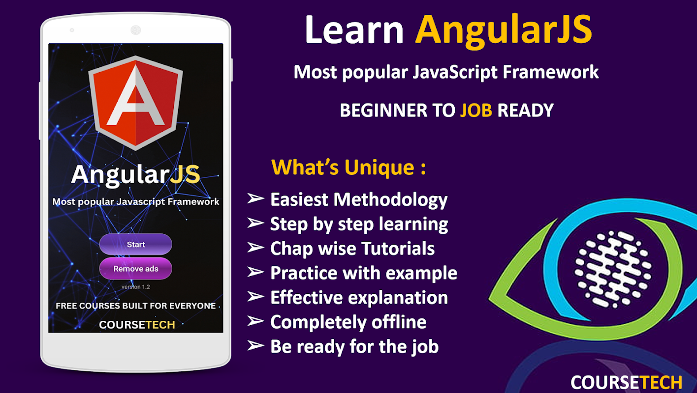 In this app, you'll discover the easiest and most effective way to learn AngularJS, step by step. 🚀