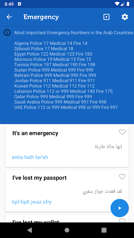 Learn Arabic phrasebook with over 1000+ essential phrases in 21 categories.