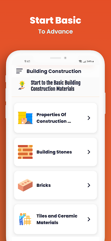 Learn Building Construction Materials is a professional app to Learning Building Construction which to helps people to understand the working Construction of machines. Learn Building Construction is designed for