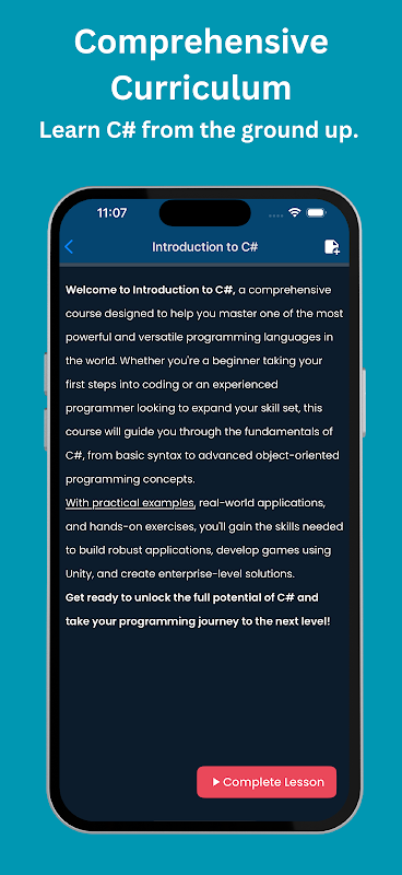 For beginners, the app starts with the foundational concepts of C#, introducing syntax, data types, and control structures. As you progress, it gradually introduces .NET concepts, object-oriented programming, and real-world applications. For intermediate learners, the curriculum covers more advanced features like LINQ, asynchronous programming, and .NET Core development. Advanced developers will appreciate the opportunity to explore cutting-edge features in the C# language and the latest .NET frameworks, ensuring they stay up-to-date with industry standards.