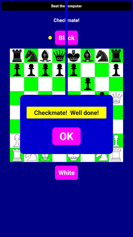 Finally, having learnt all the rules of chess, you can play against the computer in level 21. Hopefully, you should be able to checkmate it and win the game!