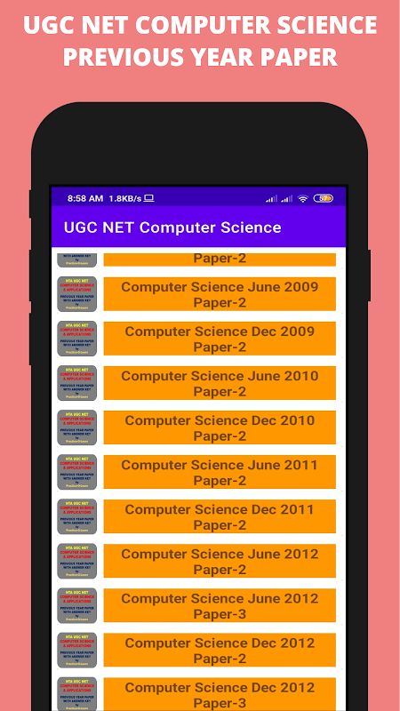 This app contains the previous year's paper of the UGC NET Computer Science and Application stream.