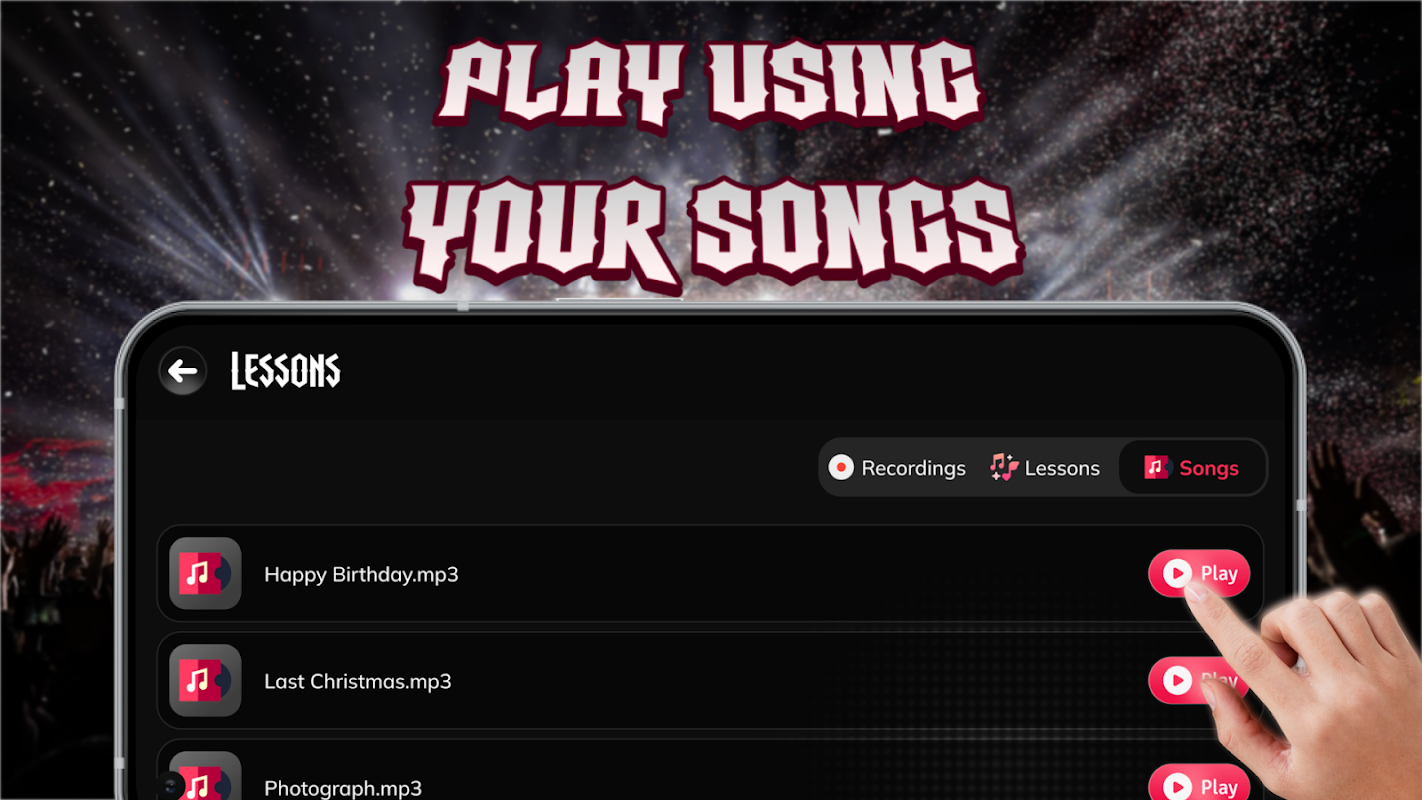 Practice, record your performance and share with friends or post on social platforms. Show off your drumming skills to the world!