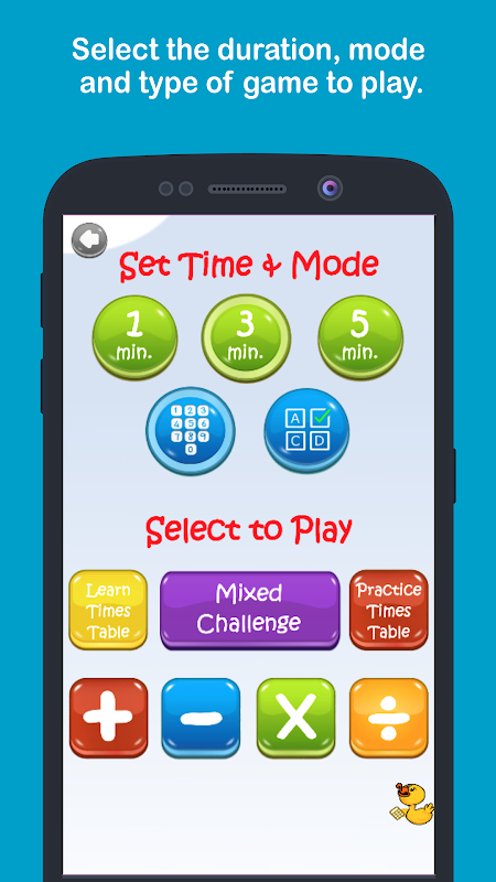 - Mixed Quiz - Advanced quiz, for kids who accomplished all four operation skills (add, subtract, multiply, divide) and tests with random question