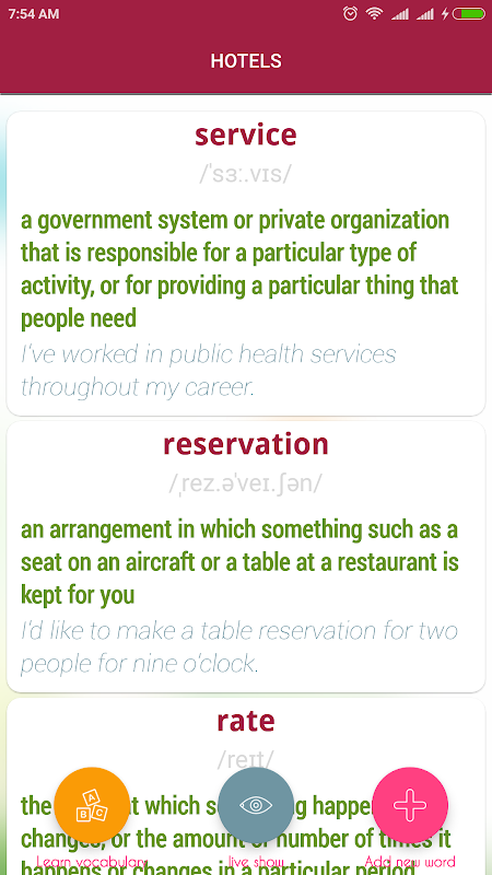 Hopefully with this application will help you learn and remember new words more easily, especially improve your English level, find inspiration in the road of English conquest, hopy you success.