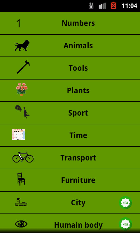 - over 1000 vocabulary words with flashcards and over 400 audio files and images